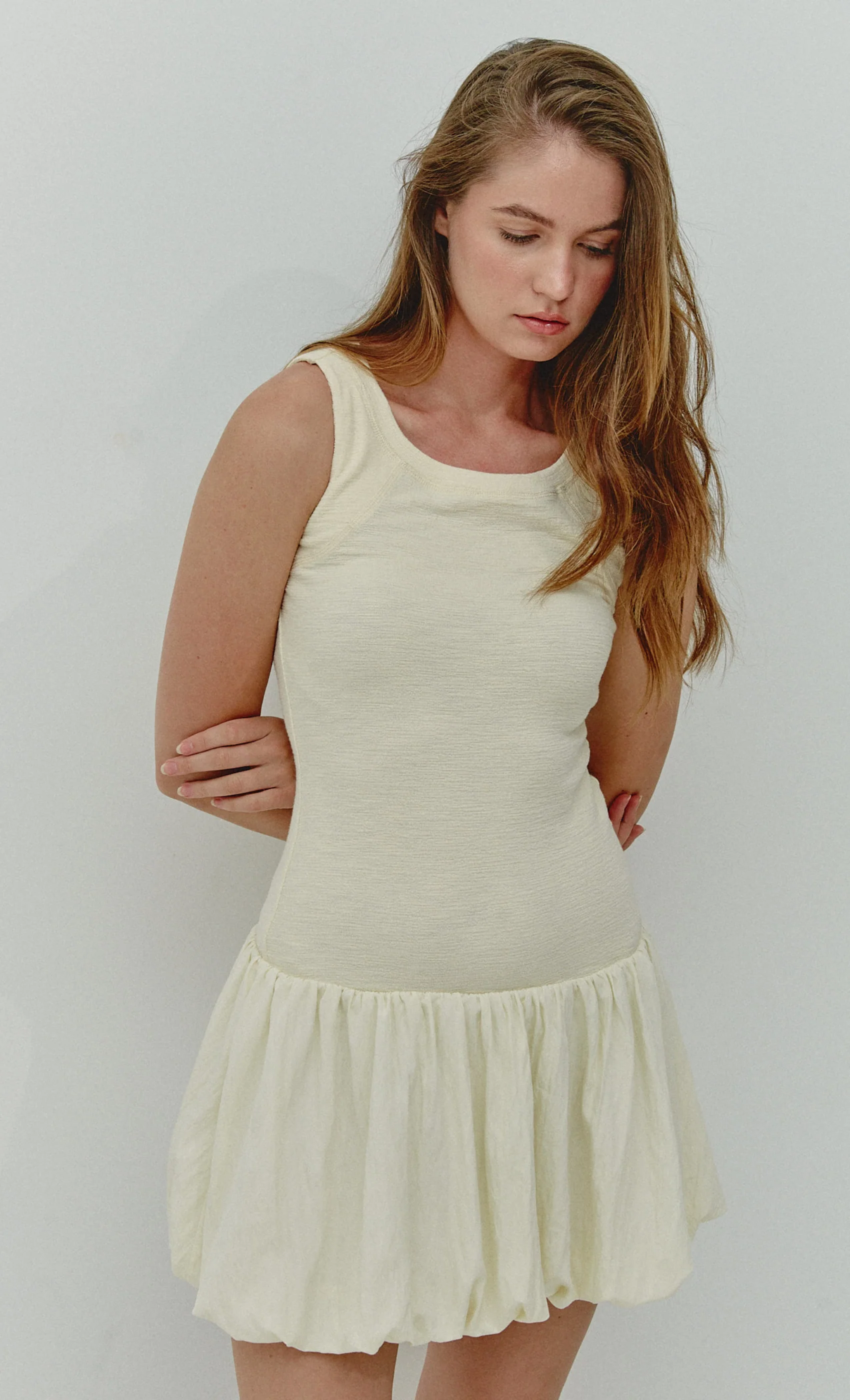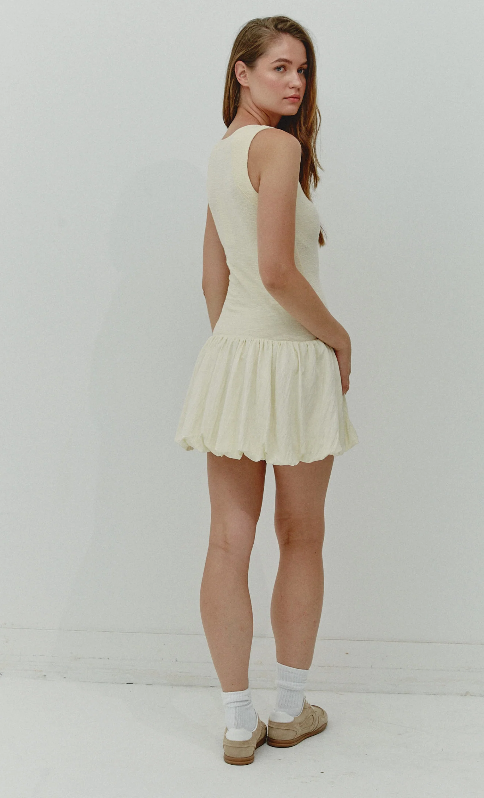 Flirty, feminine and perfect for any occasion, the Cream 2 In 1 Puffball Mini Dress is a must-have for your wardrobe. Crafted from lightweight fabric with a subtle texture, this dress offers a sleek, fitted bodice that flows into a voluminous, ruched mini skirt for a playful yet polished look.
