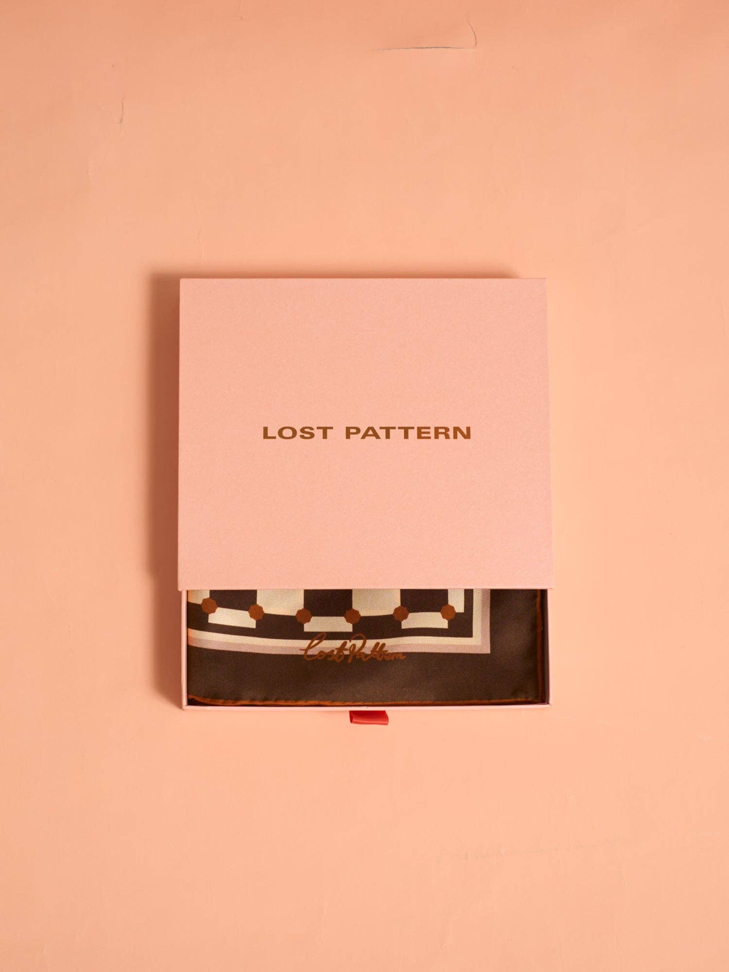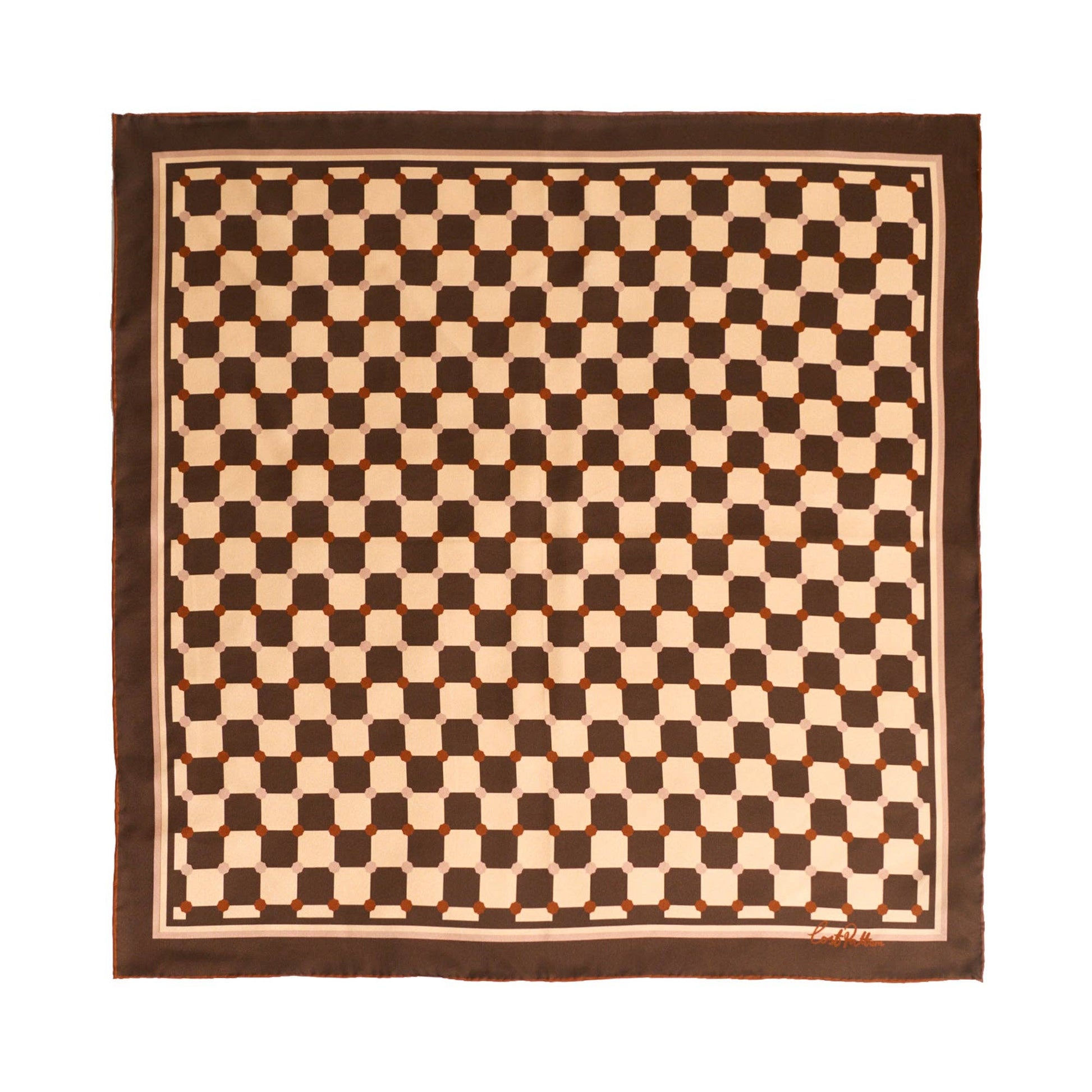 "Checkerboard" Silk Bandana Scarf - Coffee