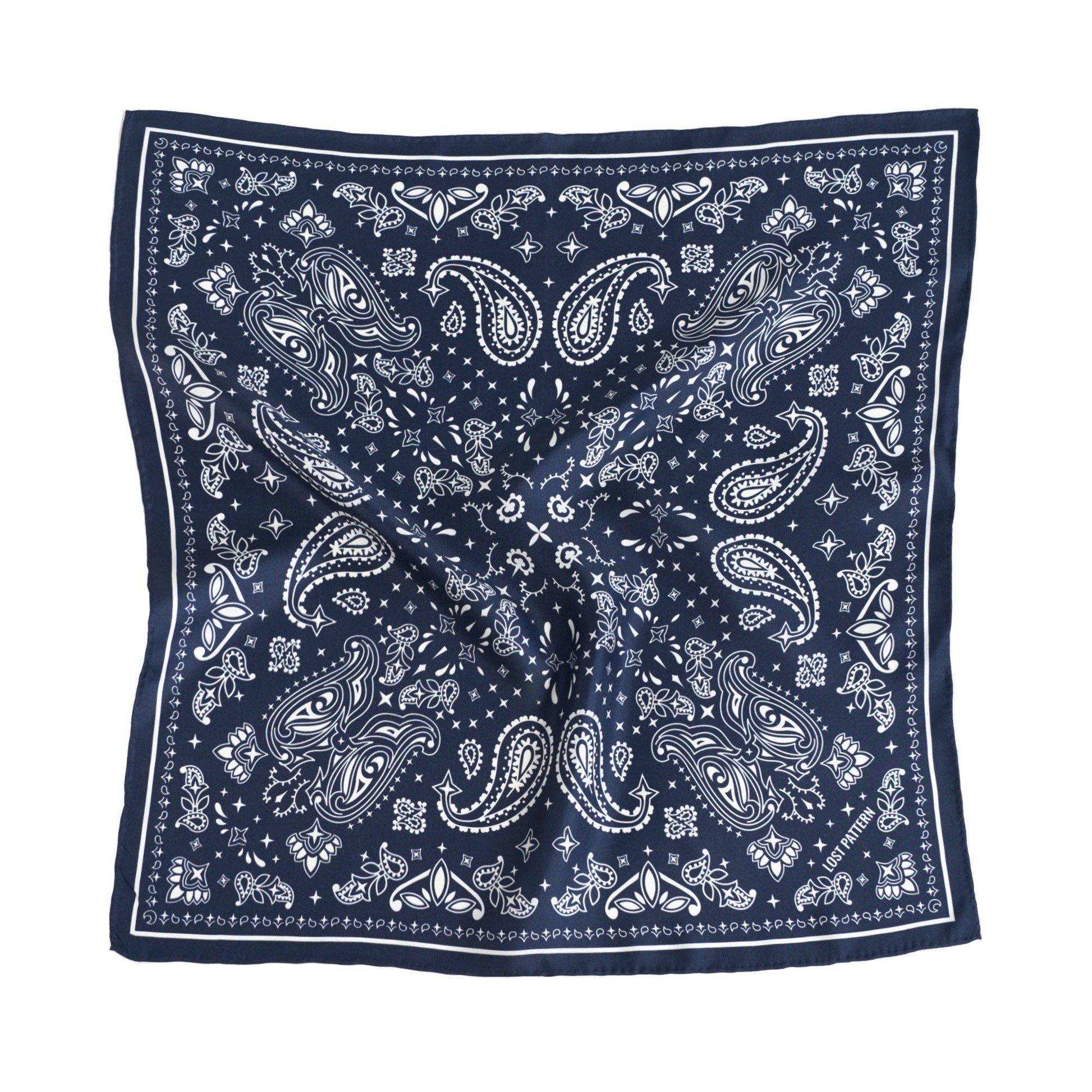 “Paisley" Silk Bandana Scarf - Midnight Blue