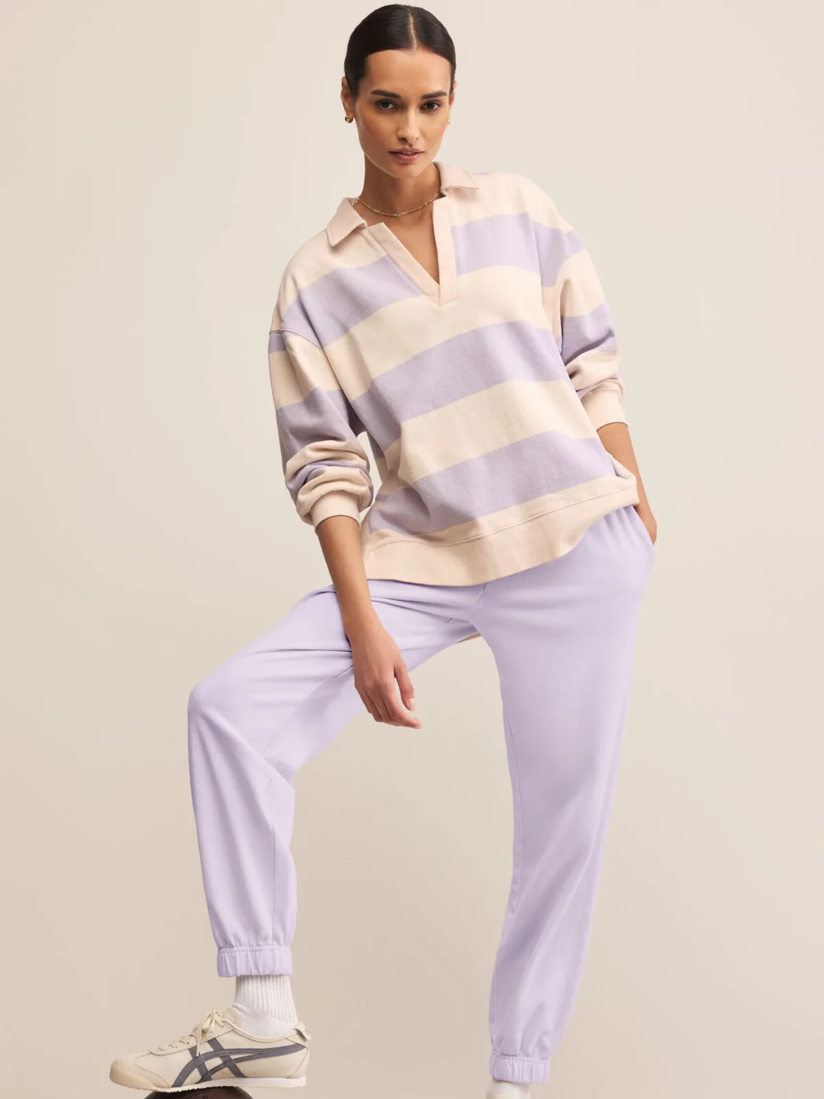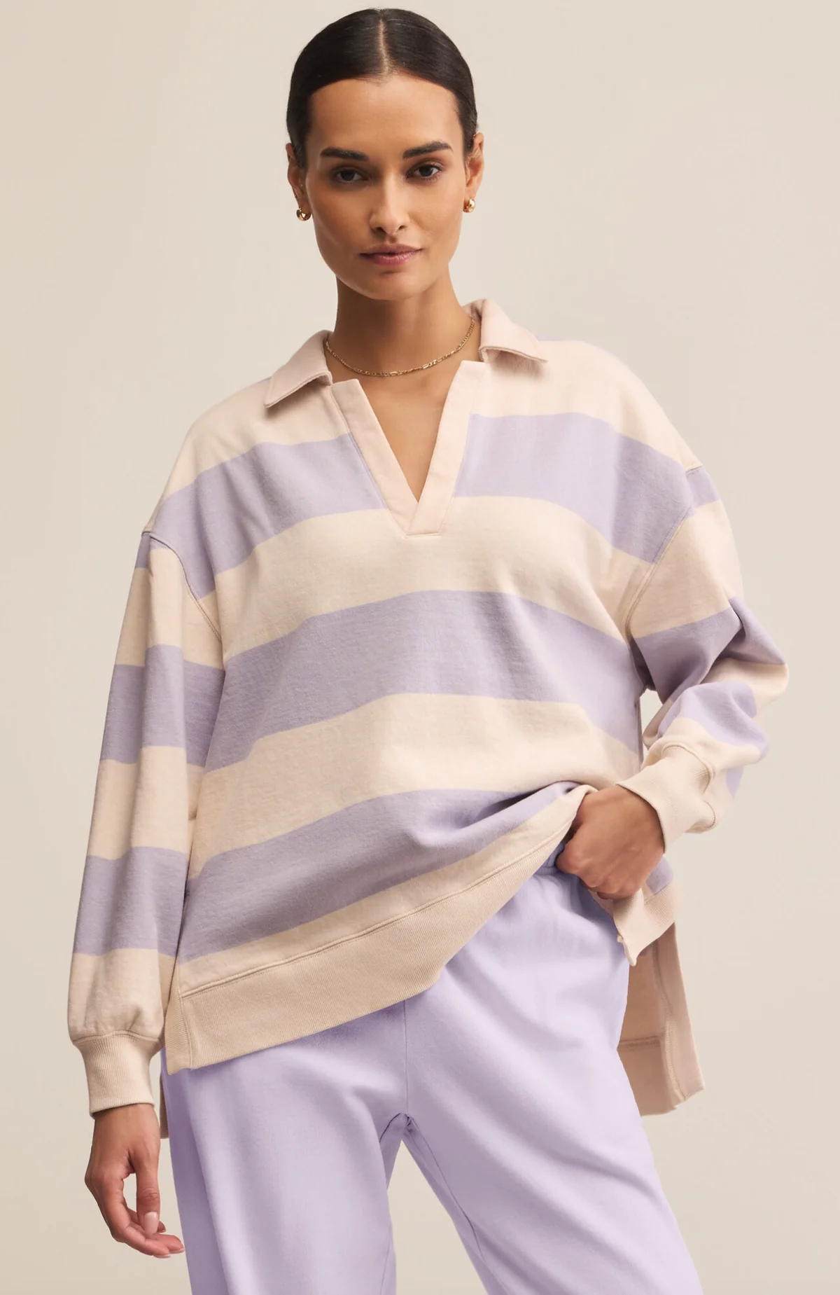 Designed in brushed fleece for a lived-in feel, this relaxed collared pullover features a hi-low hem and drop shoulders for a comfy, casual silhouette. Lightweight enough for layering, it's one you'll reach for all year.