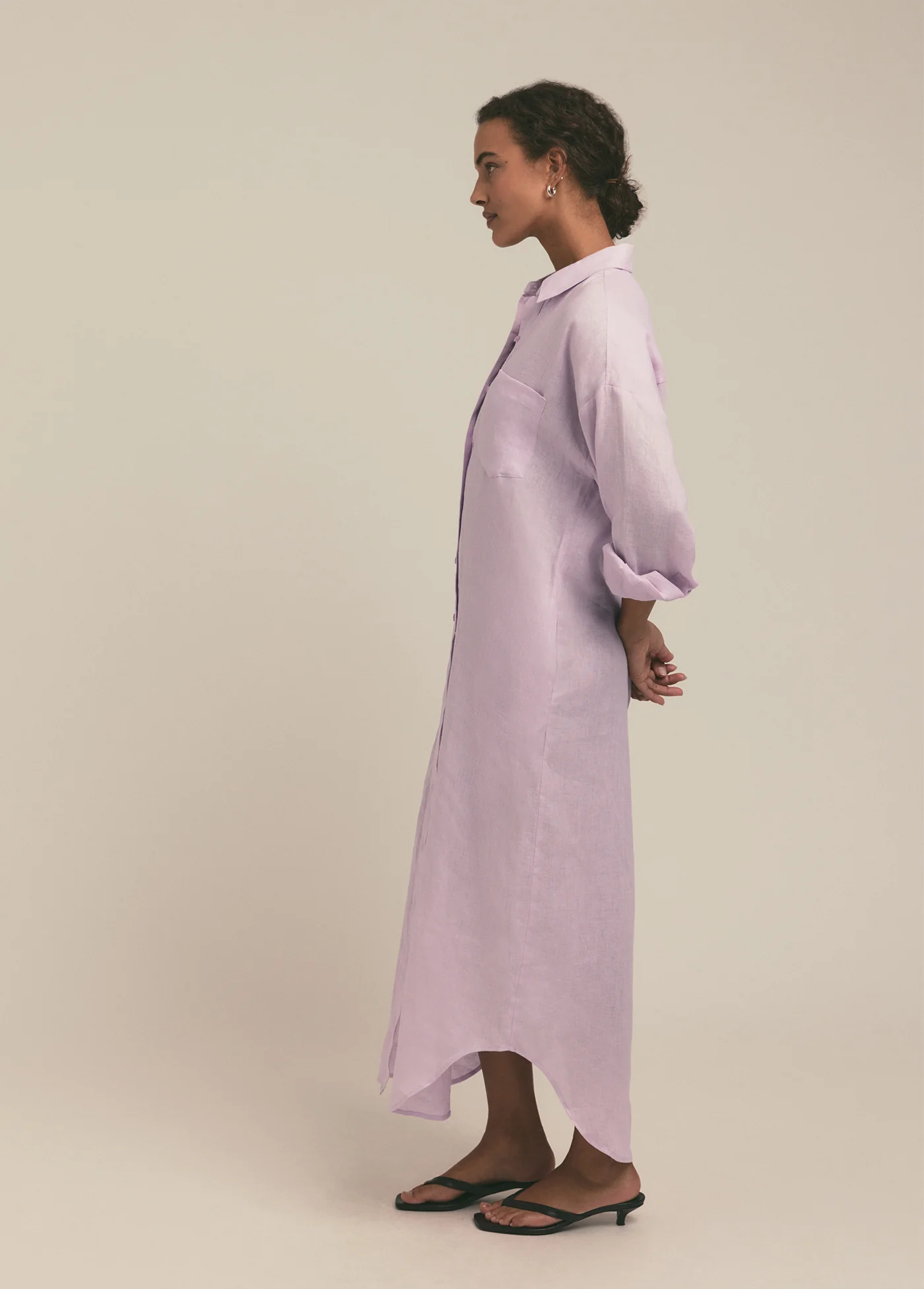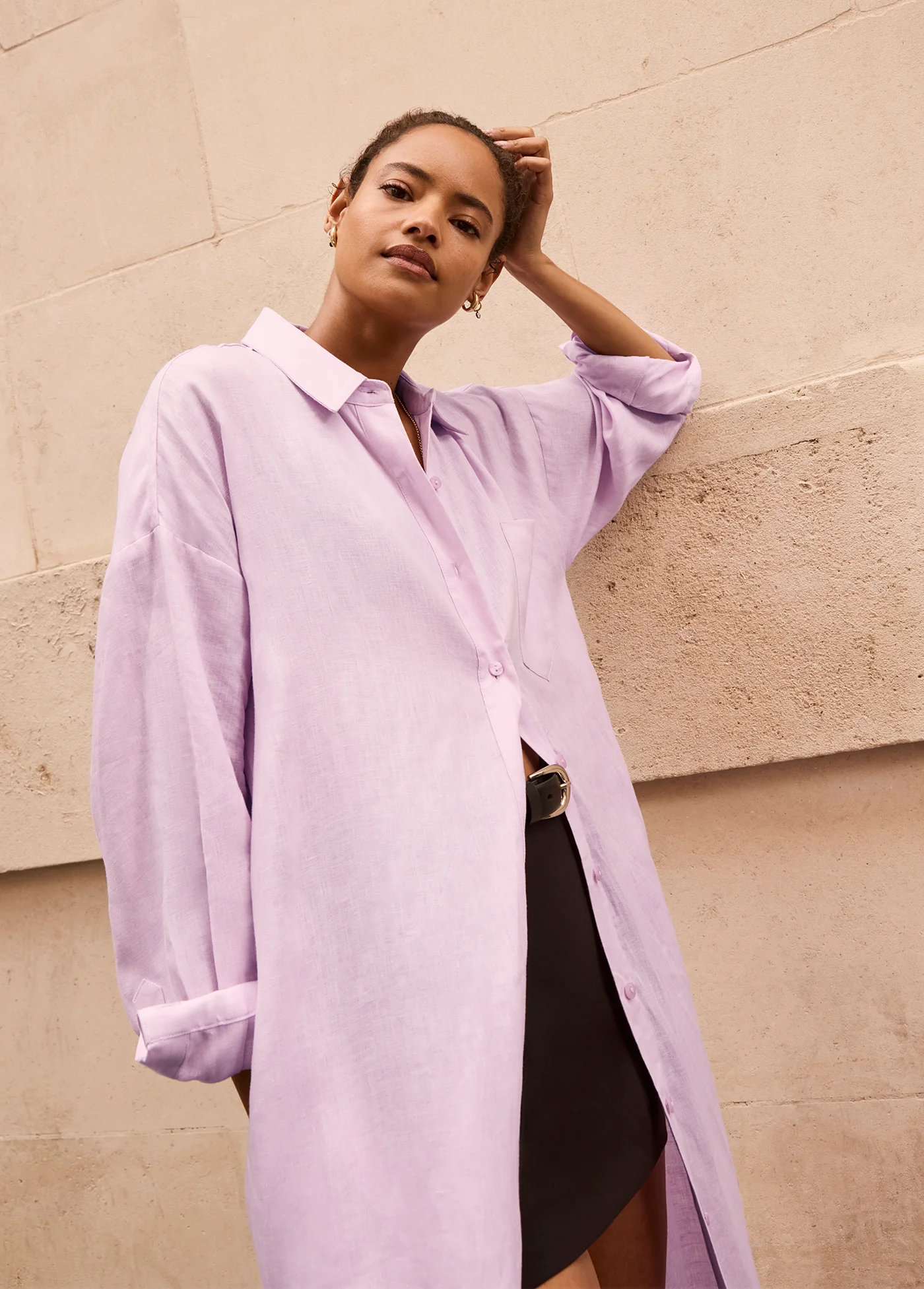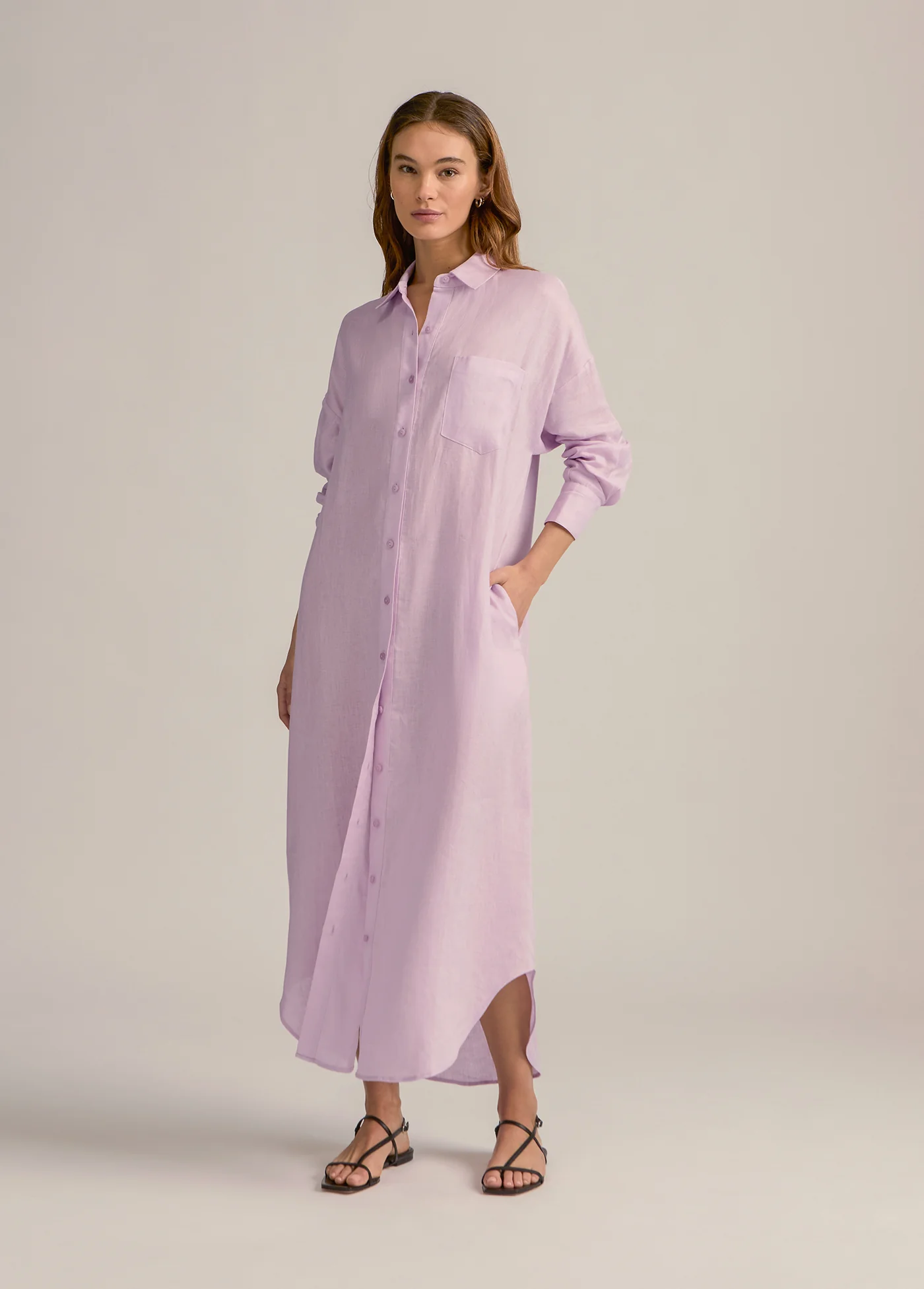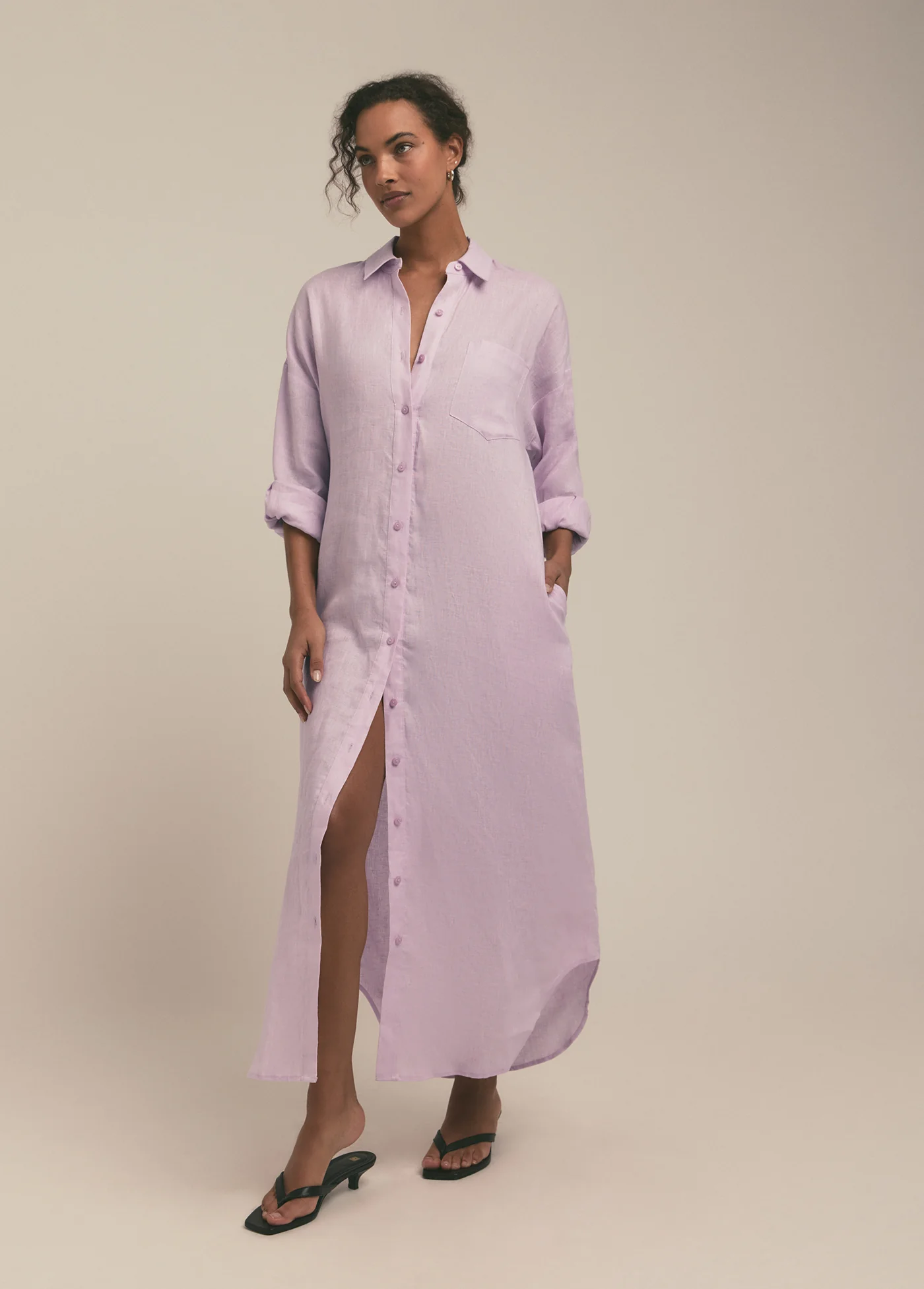 Easy, breezy, and absolutely no mixed signals—The Ex-Boyfriend Long Dress combines classic button-up styling with a relaxed, 54" length in Wisteria Musk linen. It’s an ex you’ll actually want to keep around.