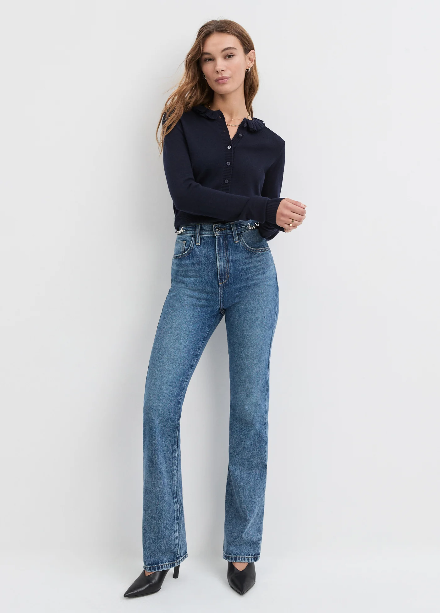 The Meet the Parents Cardigan has a ruffle neckline, classic fit, and is 100% wool. It’s the cardigan that makes a great first impression (and an even better second).